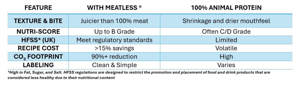 Key benefits of partnering with Meatless® for your hybrid meats